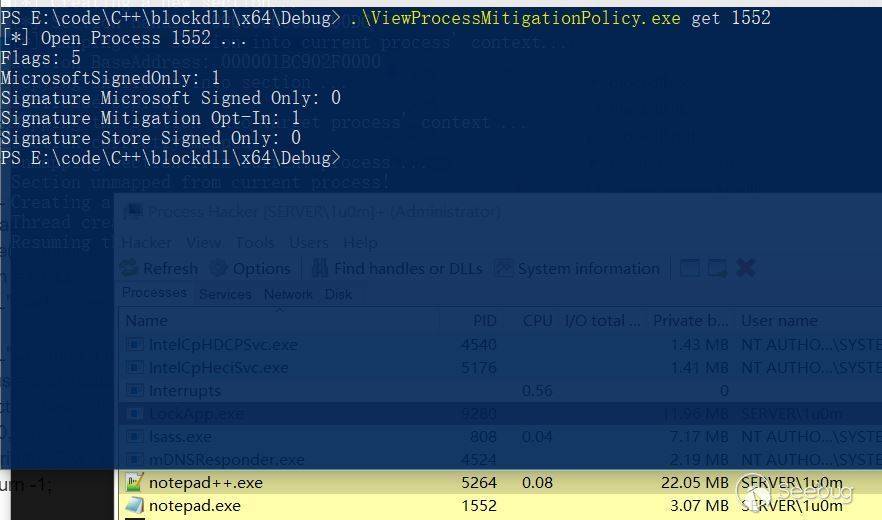 其實就是Process Hollowing,不過這里用的是shellcode而已 這里的關鍵點是CreateProcess函數的lpStartupInfo的設置,而StartupInfo的關鍵在于 PROCESS_CREATION_MITIGATION_POLICY_BLOCK_NON_MICROSOFT_BINARIES_ALWAYS_ON