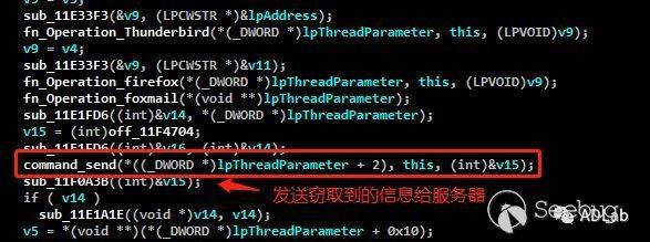 同樣,Thunderbird 郵箱的憑證數據也是存儲在數據庫文件%AppData%\\Thunderbird\\Profiles中,該木馬通過 nss3.dll 的導出函數對儲存文件的密碼進行解密。最后將解密后的數據保存在名為“xxx.tmp”的臨時文件中。