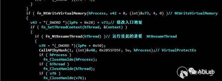 接著,該木馬使用遠程線程的方式來注入核心功能 Shellcode 代碼,并在啟動遠線程執行時,修改寫入目標進程內存偏移的 0x10E 處為開始執行代碼。