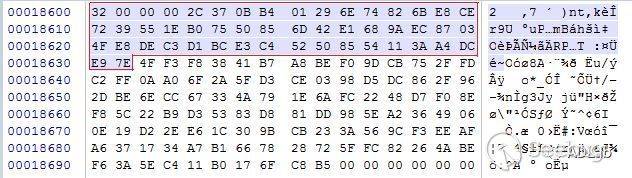 2) 當開始替換的時候,獲取硬編碼在資源里的密鑰,長度為0x32個字節。 (在資源數據中前0x32個字節是密鑰,其余0x68個字節則是待解密的數據)