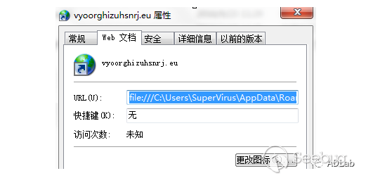 C:\Users\SuperVirus\AppData\Roaming\ptdkuybasm\"目錄下并把新文件命名為 szPathName 里保存的內容。接著在 Windows 的啟動文件夾里創建一個.url的網頁文件快捷方式,我們查看該 PE Loader 創建的快捷鍵屬性,發現此快捷鍵的訪問協議格式為file:/// ,即指向的資源是本地計算機上的文件,而后面緊跟的路徑便是復制過去新文件的全路徑。通過此方法則可實現開機自啟動以達到長期控制主機的目的。