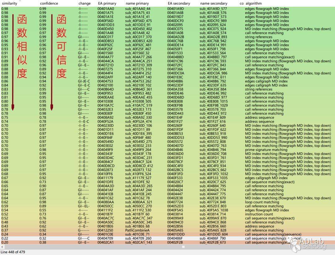其次,我們通過 Bindiff 進行了更為精確的對比,在去除部分 API 干擾并比較分析了可信度高的函數后,發現大量函數完全相同,占比達到 80.16%,其余函數則可能因為版本原因略有差別,這也印證了二者間的強關聯性。