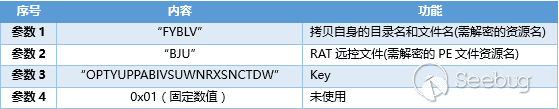 此 PE Loader 在執行 Shellcode 的時候使用了四個參數,經分析后我們將這4個參數內容所對應的具體功能整理如下表所示: