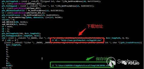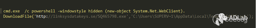 這段代碼獲得執行后,會直接從此鏈接地址(http[:]//linksysdatakeys.se)下載惡意程序到%Temp%\SAfdASF.exe并執行。