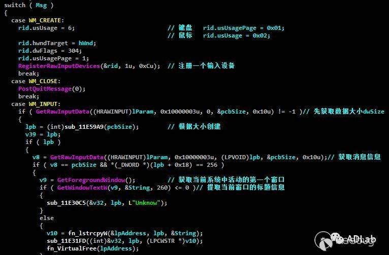 當遠程控制指令為開啟鍵盤記錄時,該木馬則通過 Raw Input 方法來實時監控當前鍵盤的使用情況。接著將捕獲到的鍵值進行判斷并轉化為字符值。同樣的,這些字符值和窗口名信息保存在C:\user\sss\AppData\Local\Microsoft Vision\目錄下,文件則以當前日期和時間來命名。