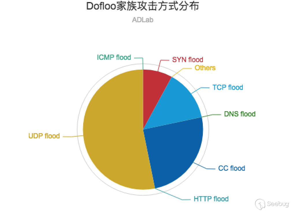 下圖為 Dofloo 僵尸家族攻擊方式占比圖: