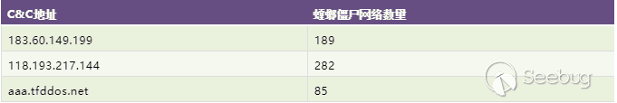 我們對這三個黑雀C&C地址相關聯的螳螂C&C做了分類統計,如下表所示: