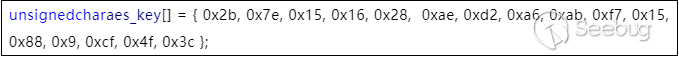 同時 Dofloo 家族對控制指令進行了 128 位的 AES 加密,這個特性大大增加了對其控制指令流量監控和識別的難度。我們對收集到的樣本進行分析后發現,所有架構下僵尸程序用來解密的 KEY 都是相同的,這也說明互聯網中 Dofloo 僵尸家族的樣本都來自同一個模版。KEY 如下所示: