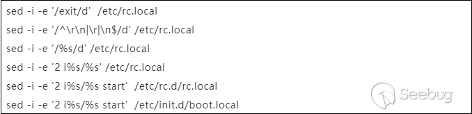 僵尸程序通過寫入開機自啟命令實現持久化。僵尸程序在啟動后,會首先檢查啟動的命令行參數, 如果發現沒有參數,那么惡意程序會默認是在該設備的第一次運行,此時會調用“autoboot”函數。在該函數中,調用“system”函數執行下表中的命令,以確保惡意程序在該設備重啟后仍能夠啟動運行。這也是 Dofloo 惡意程序在宿主設備實現持久化的唯一方法。
