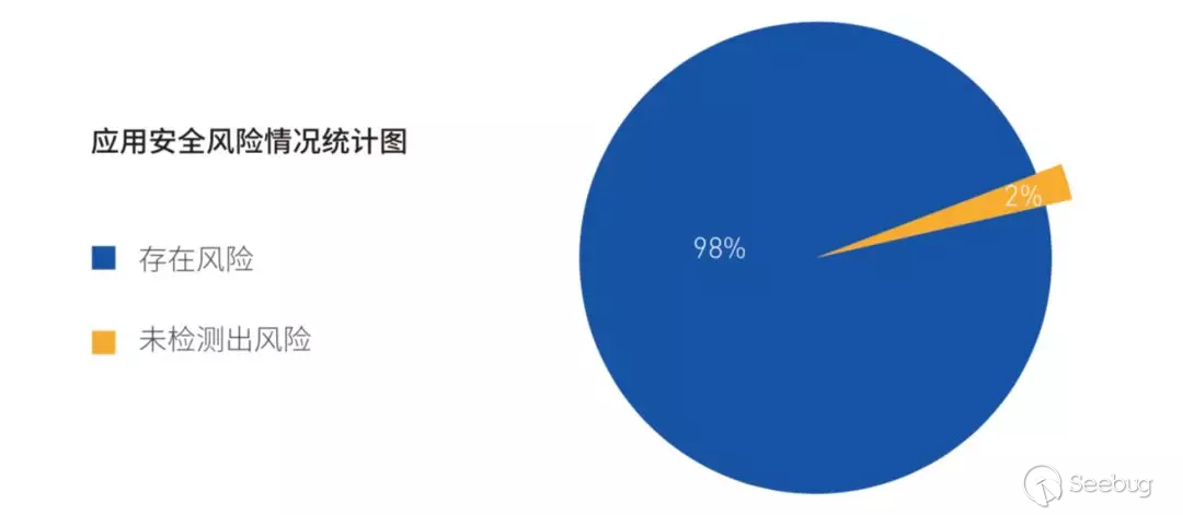 《白皮書》基于騰訊安全科恩實驗室自研的 Android 應用自動化漏洞掃描系統——ApkPecker ,選取了 2018 年下載量較高的 1404 個 App 應用,進行漏洞掃描發現:超 98% 的應用存有不同類型的安全風險,主要原因包括系統開發隱患、漏洞監測困難、避雷能力不足、修復管理滯后等。