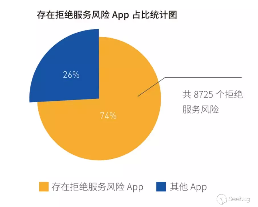 與此同時,《白皮書》還結合安全風險的觸發場景,著重對數據泄漏、組件間通信,以及 SDK、Native 第三方庫漏洞等頻繁出現在當前移動應用中的安全風險進行了詳細分析,指出在檢測的 1404 個樣本中,有 74% 的應用存在拒絕服務攻擊風險。開發人員對公開組件外部輸入數據的校驗和異常處理,是引發組件間通信惡意安全事件的主要原因,同時還將加大漏洞組合利用的風險,造成更大量級的信息泄漏。