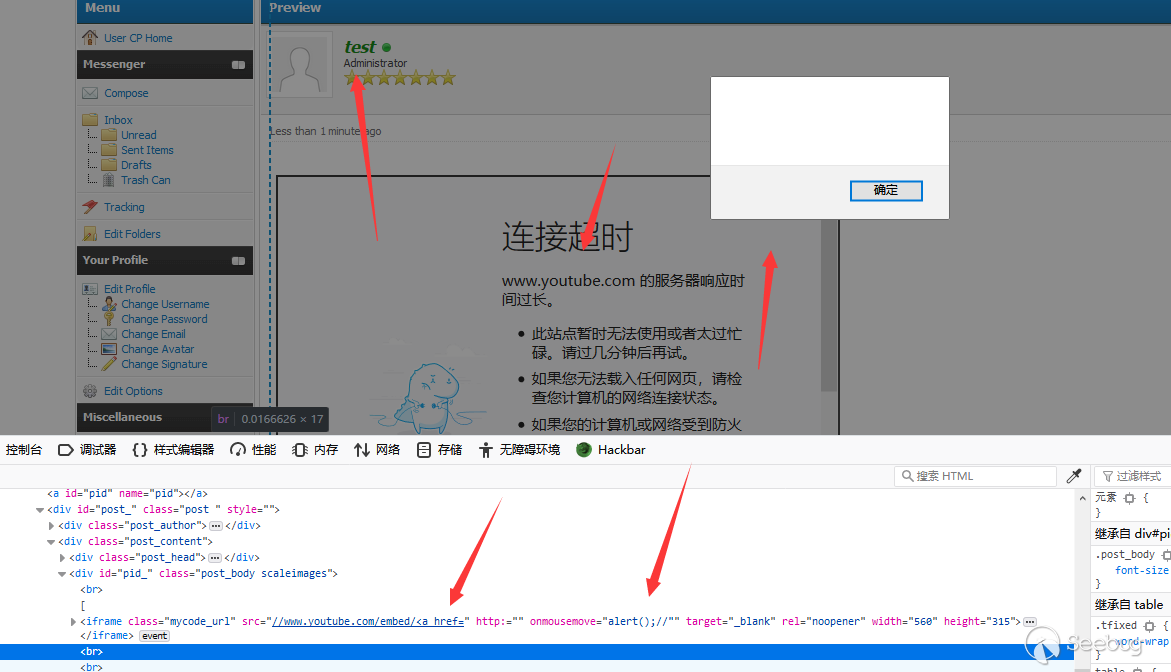 [video=youtube]http://test/test#[url]onload=alert();//[/url]&1=1[/video]