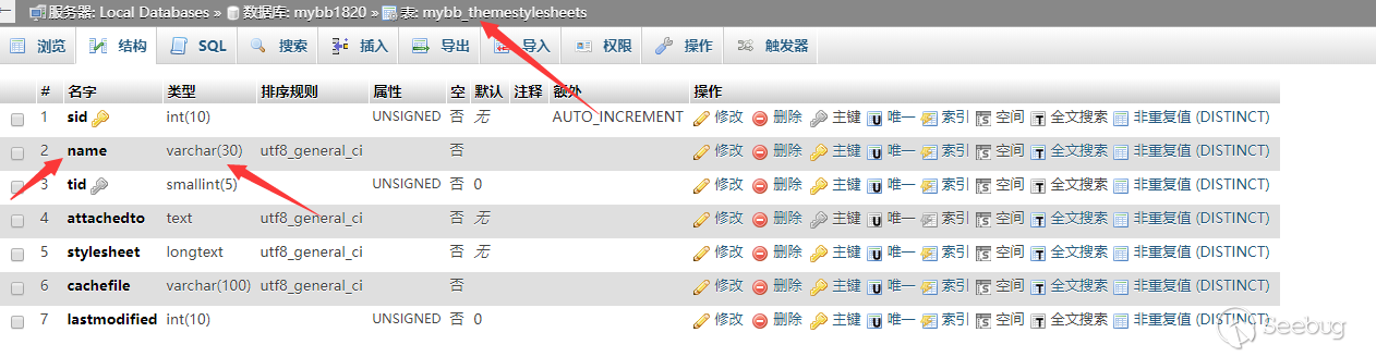 We find the type of name is varchar and there is only 30 bits.