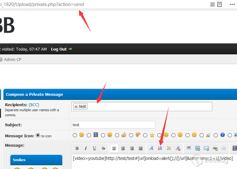 [video=youtube]http://test/test#[url]onload=alert();//[/url]&amp;1=1[/video]