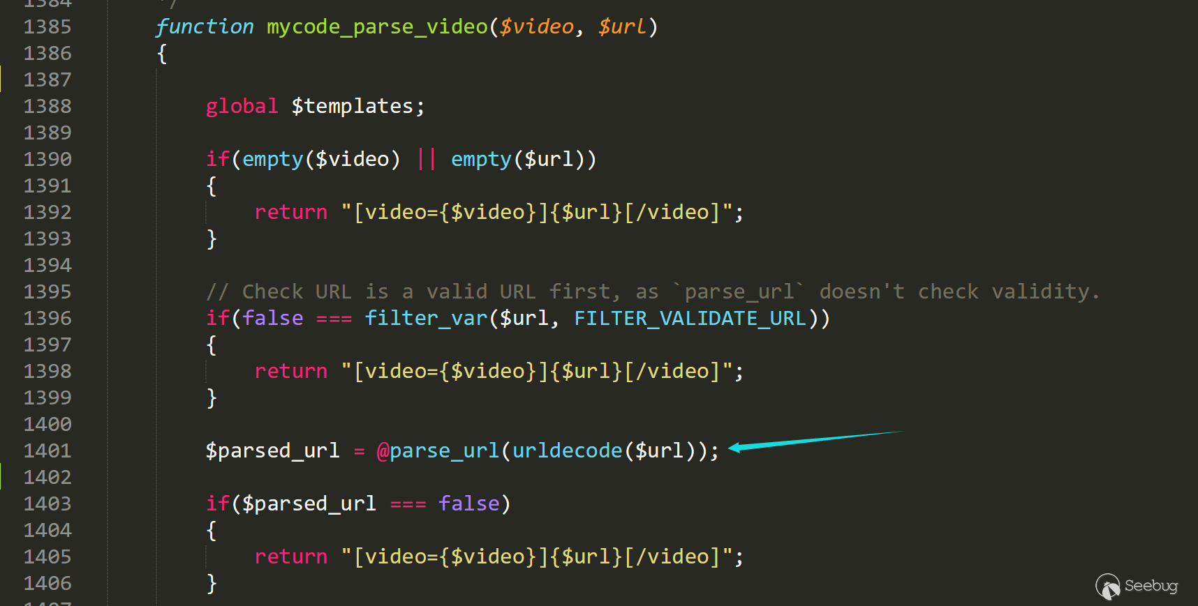 Firstly we follow into/inc/class_parse.php line 1385 mycode_parse_video.