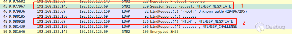 2、 將此SMB流量中繼到LDAP時,由于此時的Negotiate Sign設置為set,該標志會觸發LDAP簽名,而此SMB流量為Attacker從Exchange服務器上中繼而來,無法通過LDAP的簽名校驗,從而被LDAP忽略,導致攻擊失敗