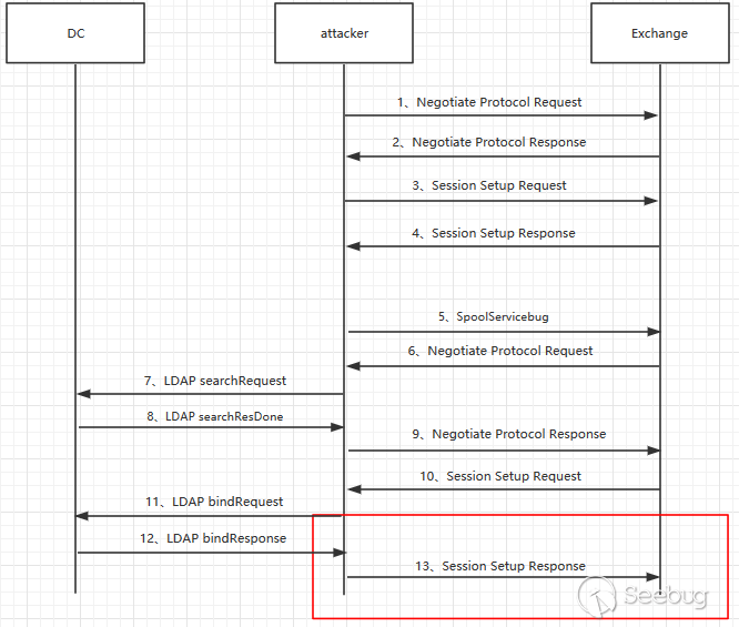 此時,DC對Attacker的身份驗證結束,Attacker成功冒用Exchange身份