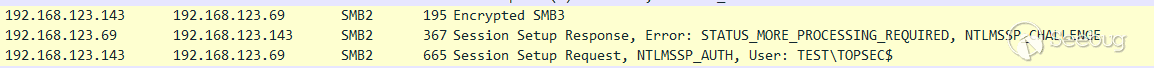 (3) 第二次身份驗證便是使Exchange向attackerhost(192.168.123.69)發起的身份驗證,用戶為TEST\TOPSEC對網絡進行身份驗證)