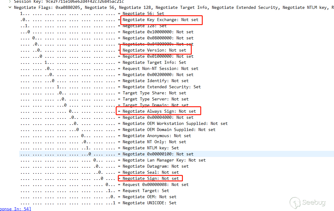 在通過LDAP中繼時, NTLM_AUTHENTICATE消息中的以下標志:NTLMSSP_NEGOTIATE_ALWAYS_SIGN,NTLMSSP_NEGOTIATE_SIGN,NEGOTIATE_KEY_EXCHANGE,NEGOTIATE_VERSION已經被設置為’NOT set’