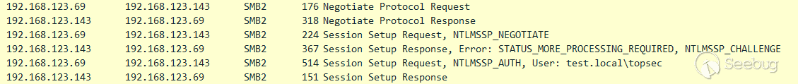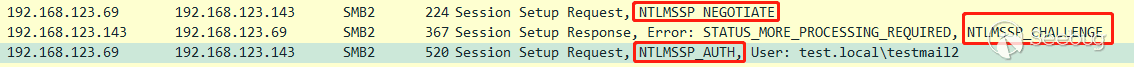 NTLM_NEGOTIATE,NTLM_CHALLENGE,NTLM_AUTHENTICATE對應位于SMB協議中的SessionSetup階段