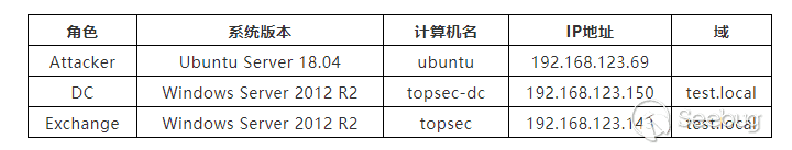 1、 Exchange攻擊流程:使用任何AD帳戶,通過SMB連接到目標Exchange服務器,并觸發SpoolService錯誤。目標服務器將通過SMB回連至攻擊者主機,使用ntlmrelayx將SMB身份驗證中繼到LDAP。使用中繼的LDAP身份驗證,為攻擊者帳戶授予DCSync權限。攻擊者帳戶使用DCSync轉儲AD中的所有密碼哈希值。