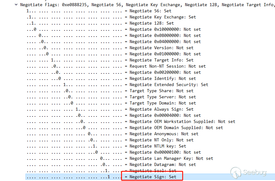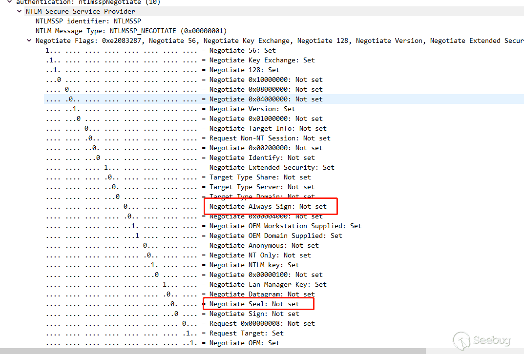 1、 取消設置NTLM_NEGOTIATE消息中的簽名標志(NTLMSSP_NEGOTIATE_ALWAYS_SIGN,NTLMSSP_NEGOTIATE_SIGN)