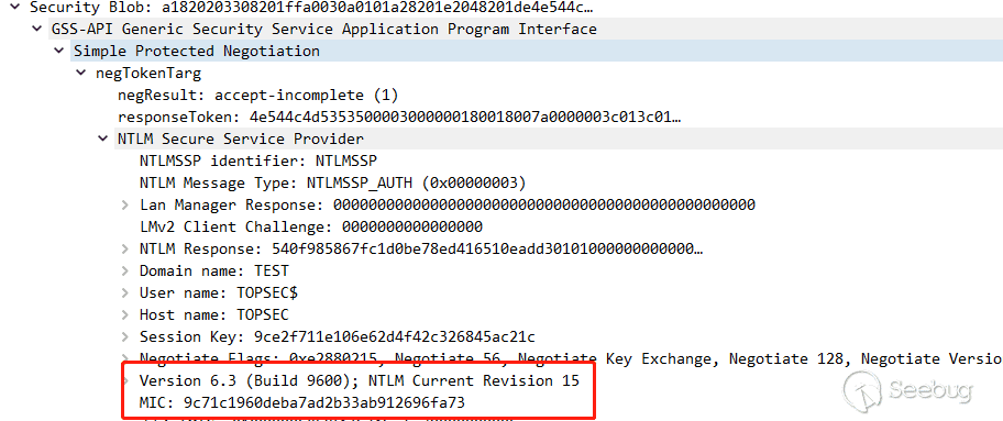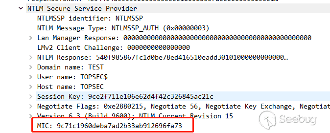為了確保惡意行為者不在傳輸過程中處理消息,在NTLM_AUTHENTICATE消息中添加了一個額外的MIC(消息完整性代碼)字段。