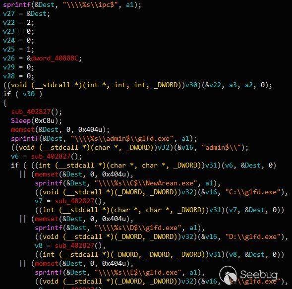 完成IPC$共享感染后,病毒程序就會創建線程,連接C2服務器,接受并執行來自于C2服務器的指令。解密C2地址,密文為EhMQHRATHRcQHRIREwkLEwsTQw==,Nitol木馬的顯著標志為的解密算法:base64+凱撒移位+異或。