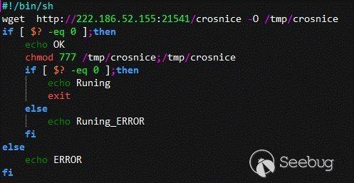 Linux腳本9527.sh在感染機器植入ELF木馬crosnice (hxxp:// 222.186.52.155:21541/crosnice)